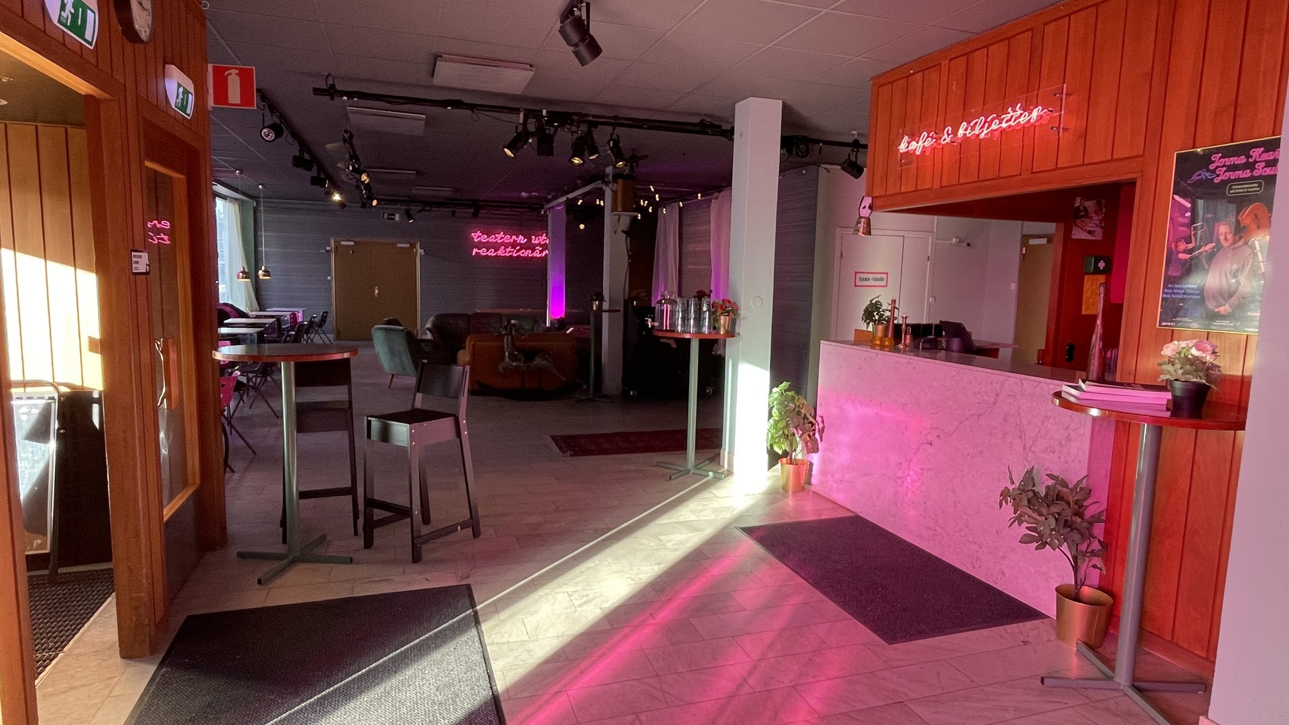 Vår foajé med tillhörande foajéscen och bar är perfekt för mindre evenemang så som readings, stand-up, publiksamtal, utställningar etc.