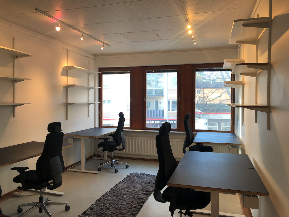 2 lediga kontorsplatser i delat rum om 19 kvadratmeter.
