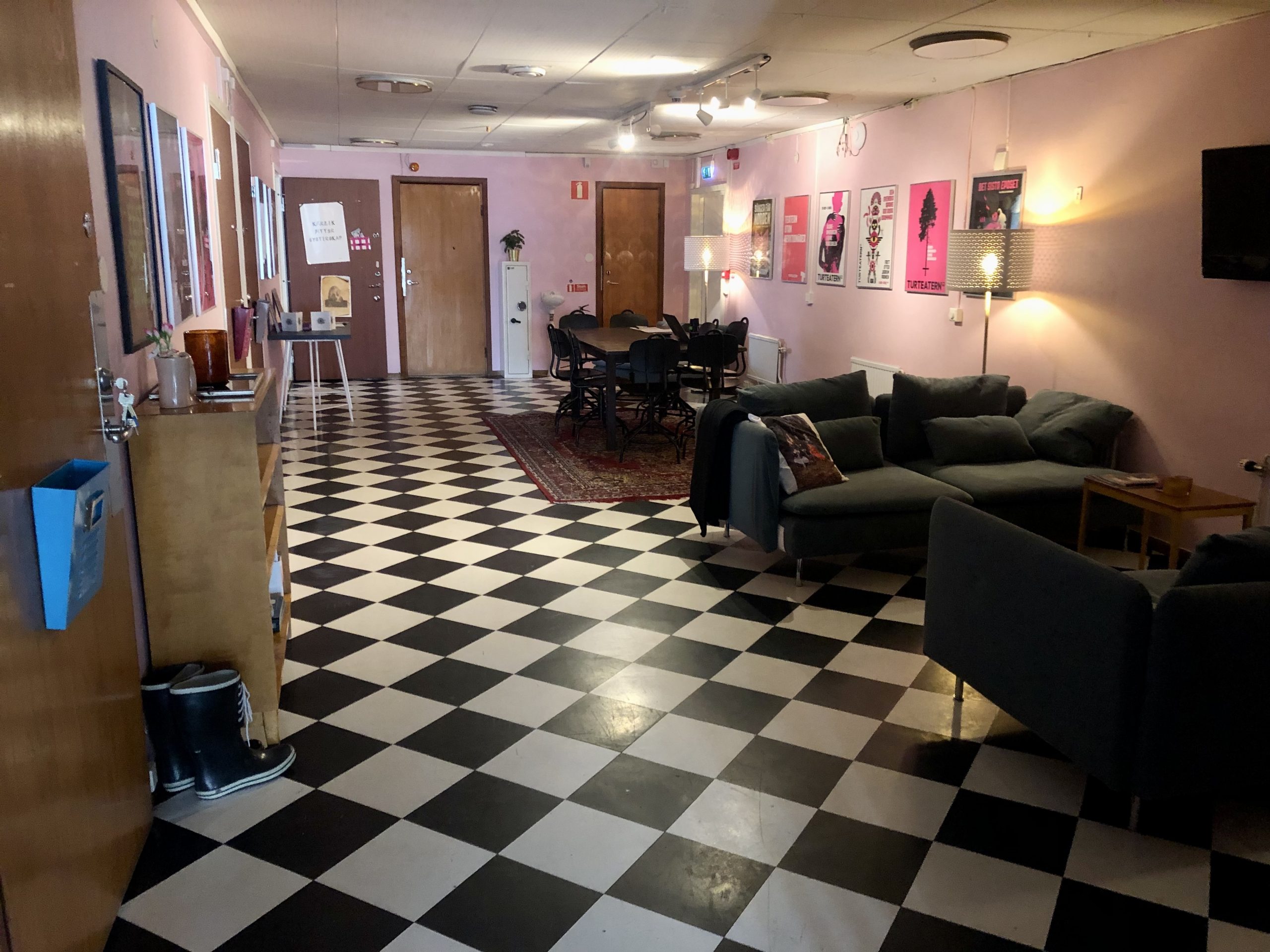 I grannkontoren sitter Turteaterns fasta personal och frilansande hyresgäster främst verksamma inom scenkonst.